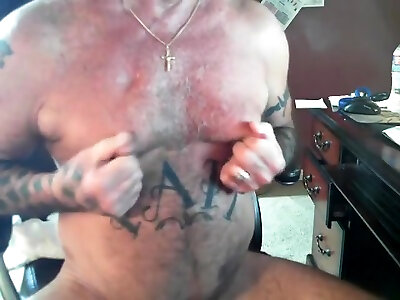 Daddy with a cigar draining and nipple have fun