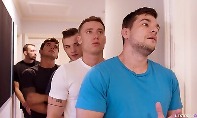Joey Mills Touches His Foot Over Amone Bane's Bulge, Then Crawls Under The Table & Sucks His Spunk-pump - Twink POP