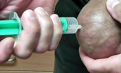 Needle Estim From Pierced Cock Two Testicle! Extreme CBT Needle Play Amateur BDSM - Orgasm with Thick Cumshot